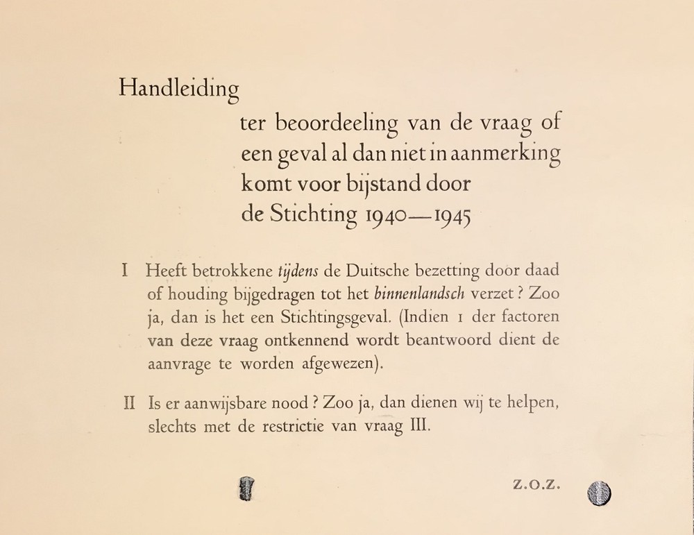 Vanaf 1947 kunnen nabestaanden van overleden verzetsmensen en invalide verzetsmensen een buitengewoon pensioen aanvragen. Dat mag geen beloning zijn voor verzet. Daarom moet er een ‘causaal verband’ aangetoond worden tussen het verzetswerk en het overlijden of de invaliditeit. En de aanvrager moet zich altijd als ‘waardig’ Nederlands burger hebben gedragen.