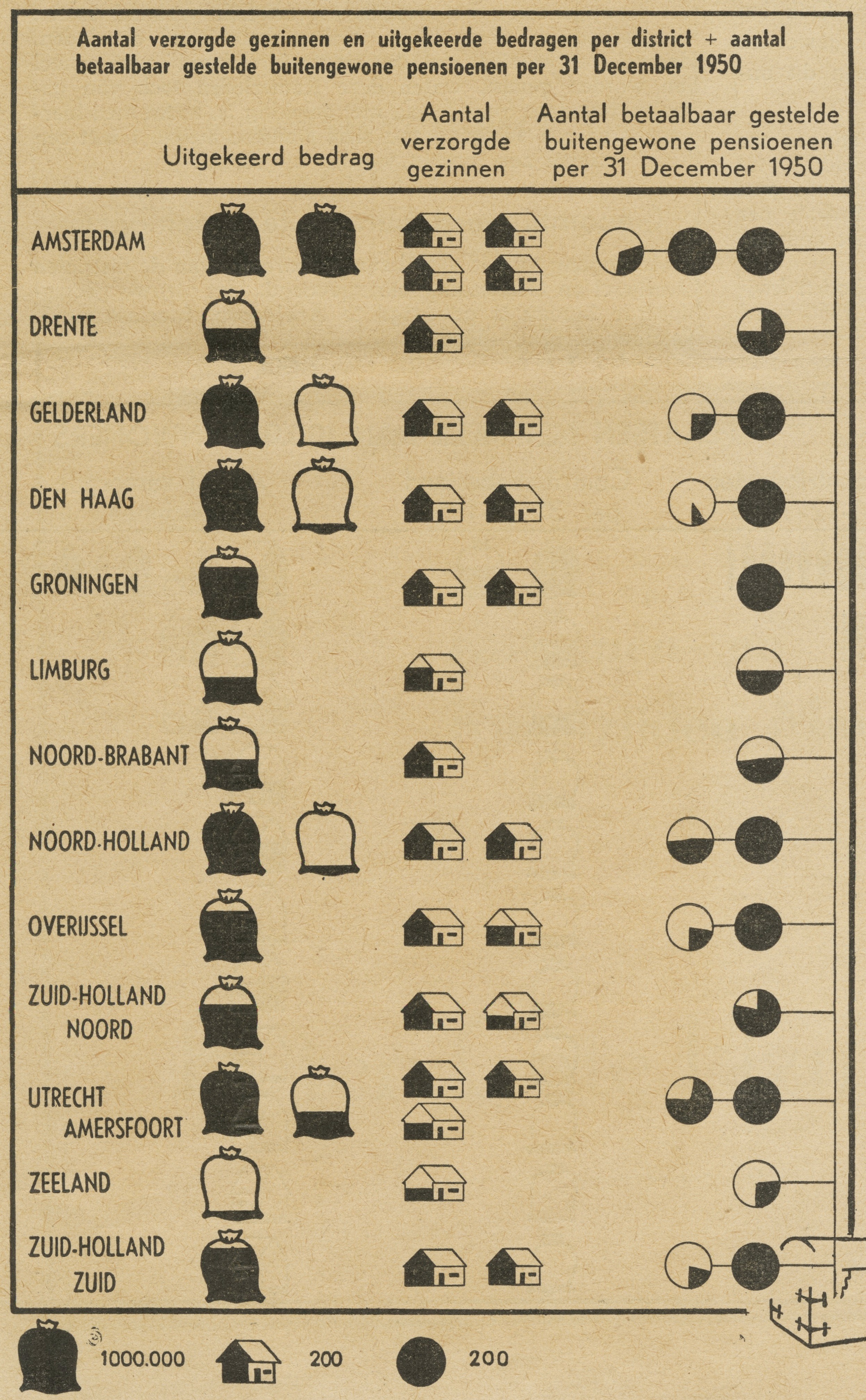 De directeur van districtskantoor Amsterdam, Andries Jan Teunissen, zet een bijzonder project op: verzetsweduwen zonder kinderen gaan verzetsweduwen met kinderen helpen. Zo krijgen de gezinnen ondersteuning, en de weduwen zonder kinderen een zinvolle tijdsbesteding. Teunissen: “Langzamerhand breidde het aantal vrouwen dat hulp wilde verlenen zich uit. Het heeft dit voordeel opgeleverd, dat men zich één is gaan voelen, als één groot gezin. De saamhorigheid is er door versterkt en menig gezin is door grote moeilijkheden heen geholpen.”