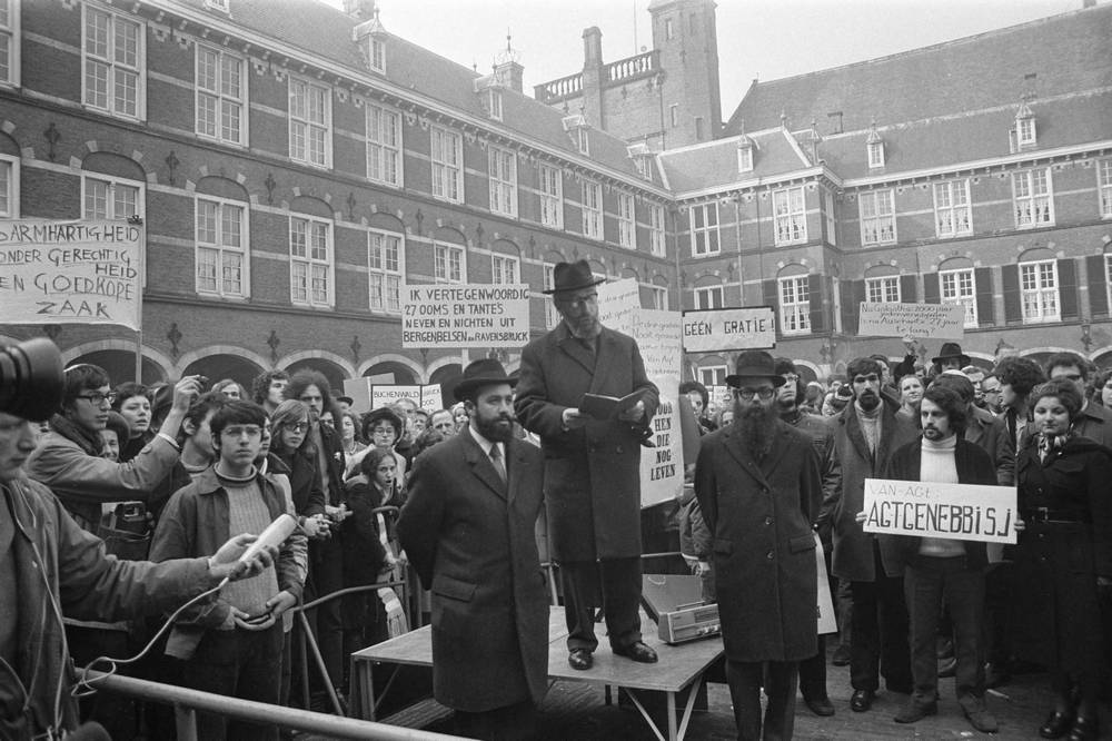 De LKG demonstreert in 1979 bij de uitspraak in de zaak tegen oorlogsmisdadiger Pieter Menten. (Nationaal Archief)