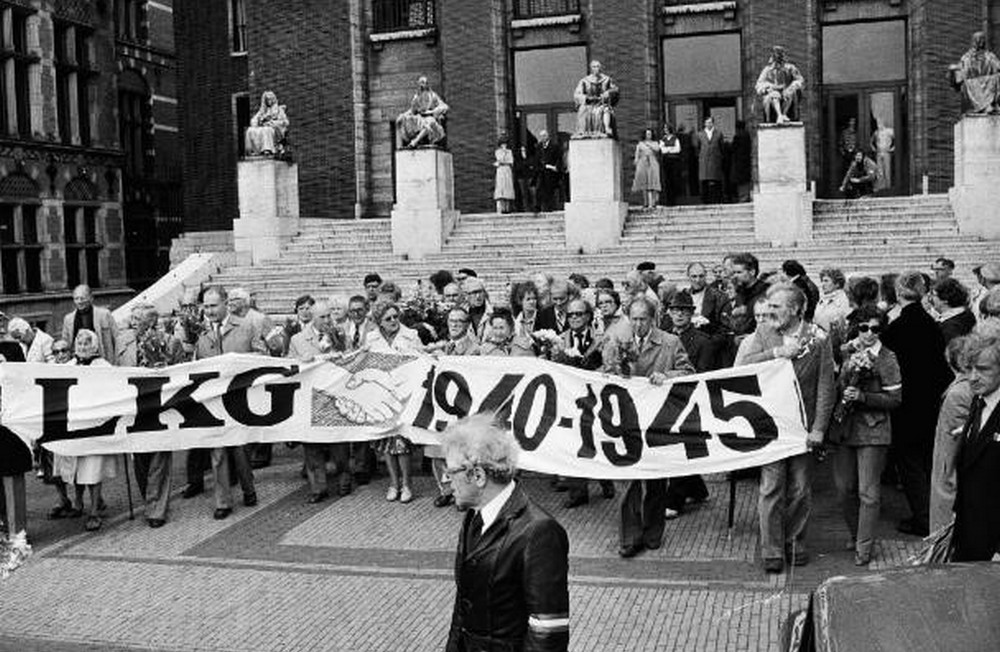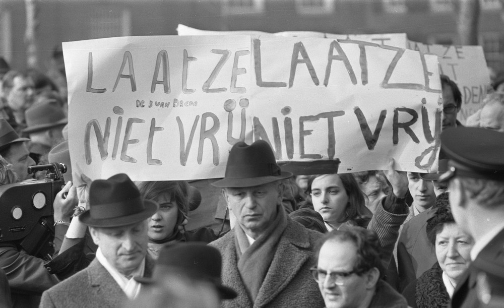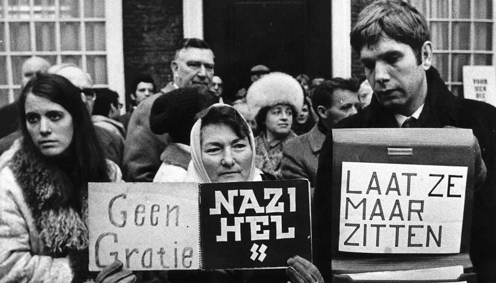 De LKG demonstreert in 1979 bij de uitspraak in de zaak tegen oorlogsmisdadiger Pieter Menten.