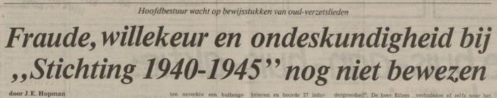 Dan schrijft tijdschrift Panorama dat Meester helemaal niet actief was in het verzet, wat blijkt te kloppen. Zijn pensioen wordt na veel getouwtrek ingetrokken. De Stichting komt onder vuur te liggen.