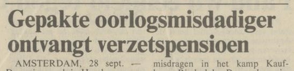 Artikel in Panorama over Eibert Meester die onterecht buitengewoon pensioen kreeg, augustus 1976. (Collecrie Verzetsmuseum Amsterdam)
