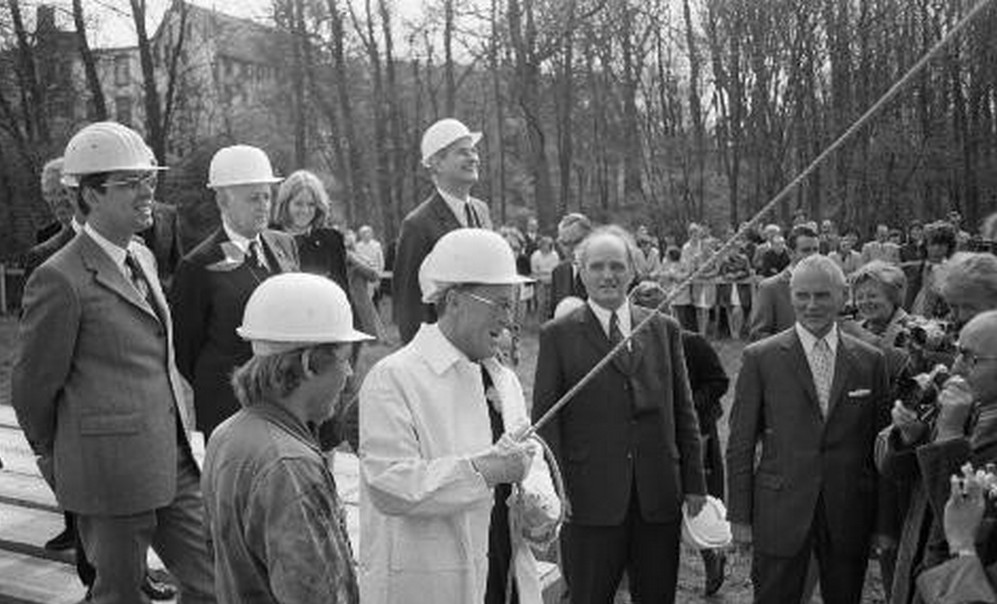 Prins Bernhard bij de start van de bouw van Centrum ’45, 1972.